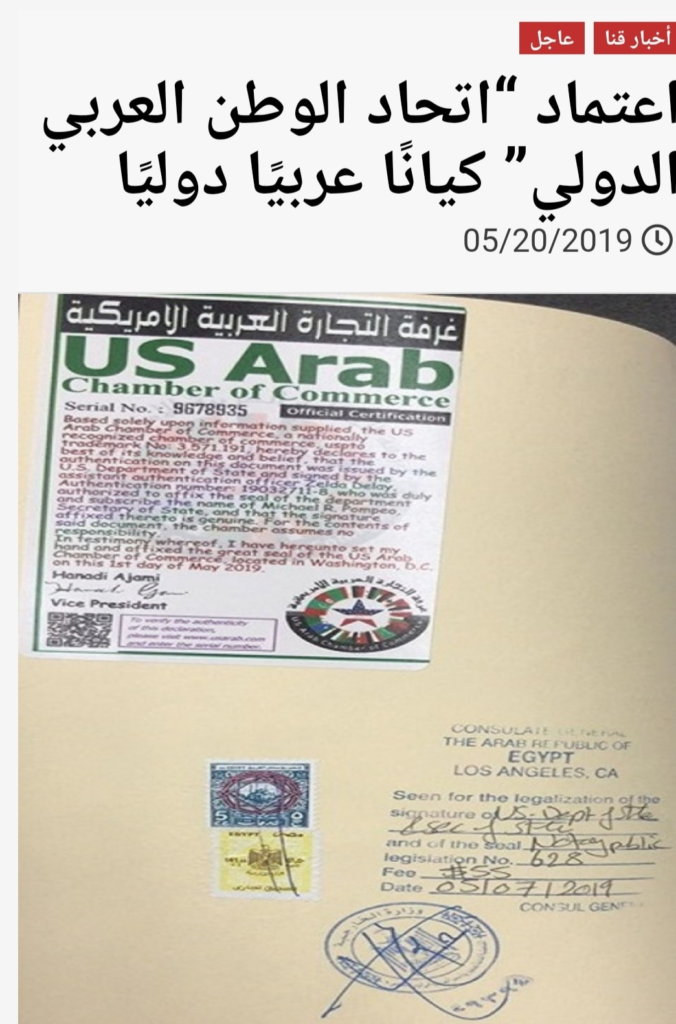 وتم توثيقه من غرفة التجارة الأمريكية والعربية